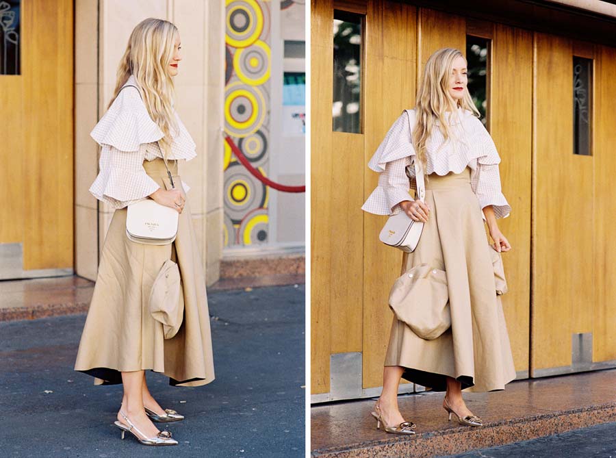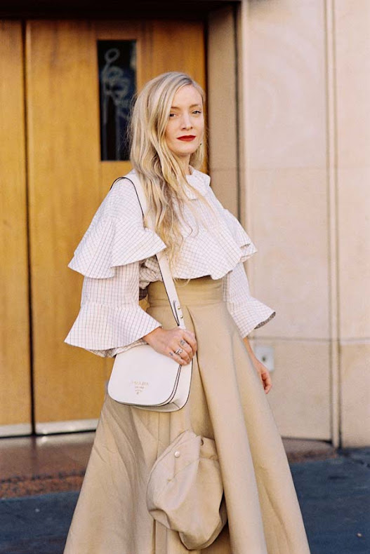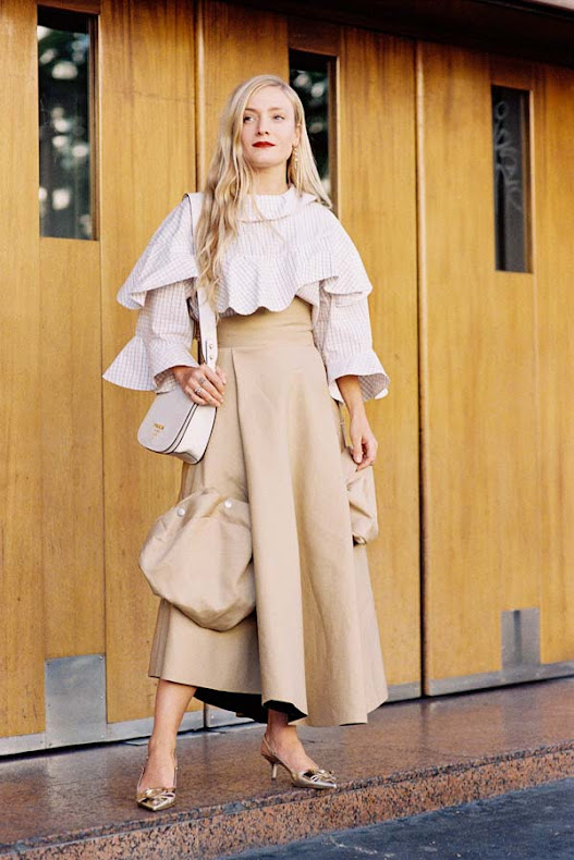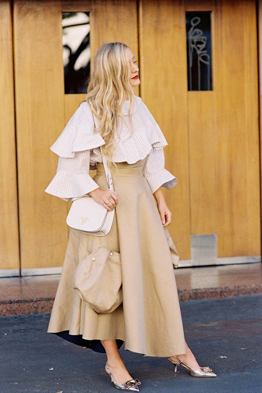 The beauty of neutrals....and ruffles.....and oversized pockets....and point-toe slingbacks.