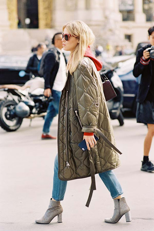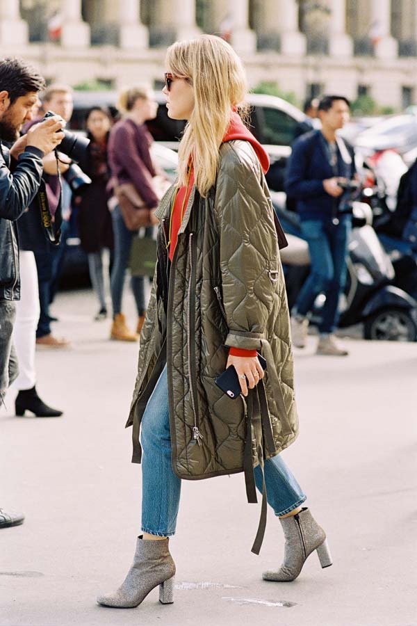 Love this totally wearable casual/dressy look on Annabel - a sporty parka + hooded sweatshirt paired with sparkly boots.