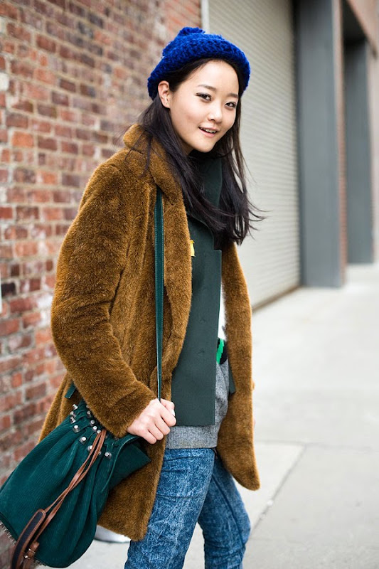 Korean model Hyoni Kang after DKNY. Her panda sweater makes me happy. As does her bright blue beanie! p.s. My thoughts and prayers are very much with the people of Japan right now.
