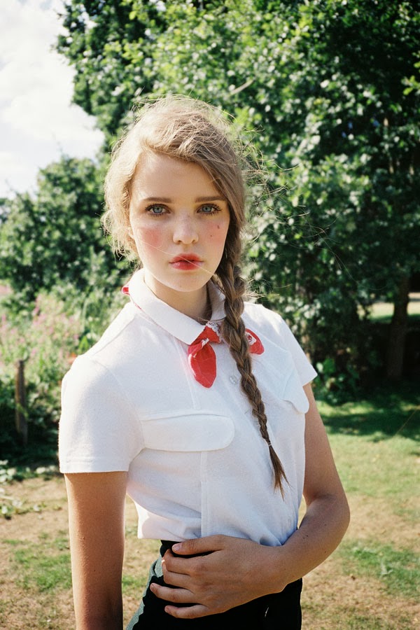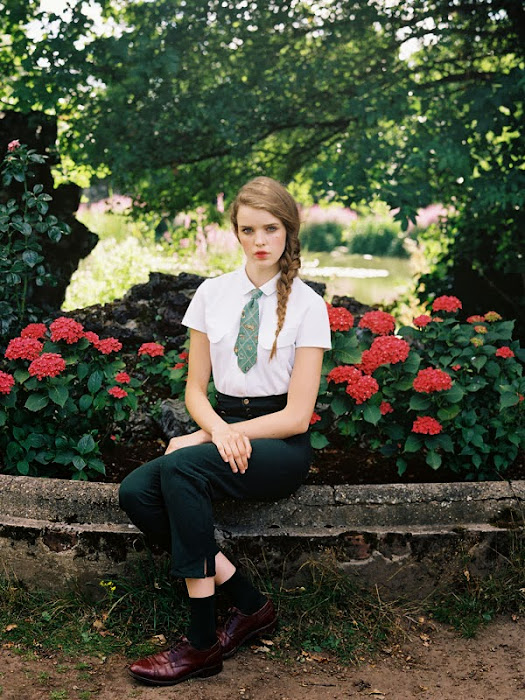 This is, well, I'm not even sure which words to use - 'deliciously pretty' and 'evocative' both feature somewhere in there. A perfect match between photographer, stylist, model and make up artist (lovely to see that it was Jessica!) Moonrise Kingdom is a favourite film of mine, and I love the allusions to it in the mixture of bittersweet innocence and tomboyish looks.