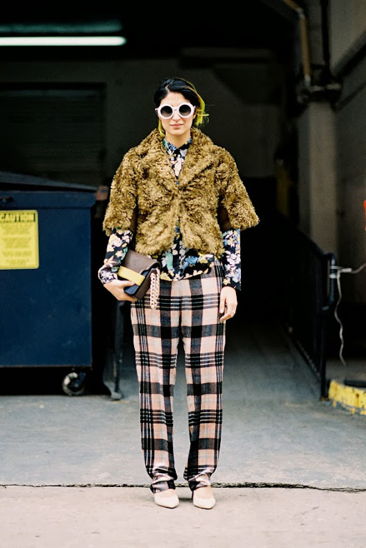 Mixed prints, statement plaid, teddy fur jacket: Preetma killin' it again.