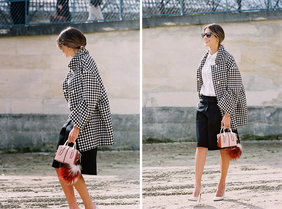 Adore Yasmin's longline jacket (almost like an exaggerated length tuxedo jacket) with rolled hem jeans, sportswear-inspired top and gorgeous silver pumps. And her fab plaid umbrella.... the kind of umbrella I would lose within two days of purchase!